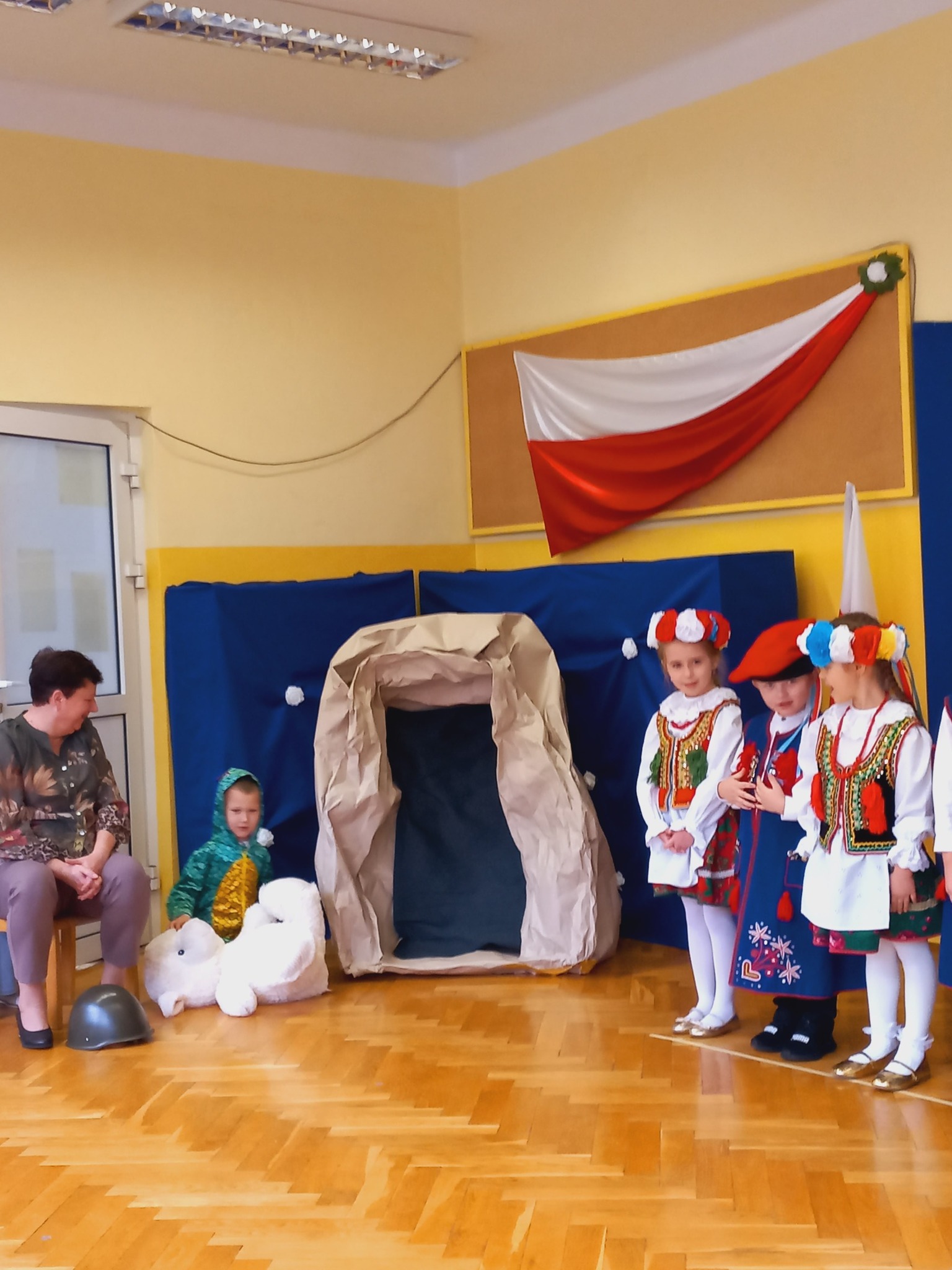 Dzieci z ogromnym zaangażowaniem zaprezentowały Krakowiaka oraz inscenizację „Legendy o Smoku Wawelskim ” – połączenie tradycji, historii i symbolicznego przesłania o sile wspólnoty i odwagi.