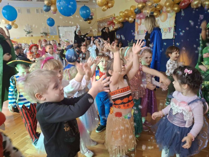 W programie nie zabrakło wesołych konkursów, zabaw ruchowych oraz tańców przy ulubionych przebojach. Dzieci chętnie brały udział we wszystkich atrakcjach, wykazując się energią, uśmiechem i doskonałym humorem.