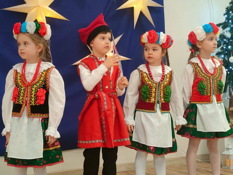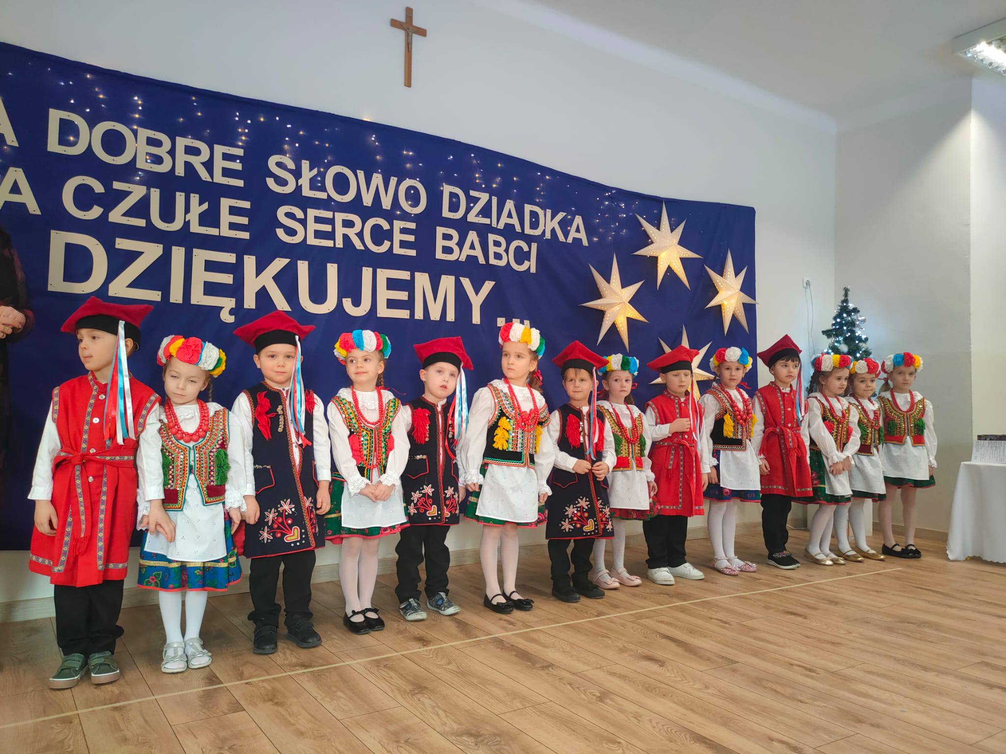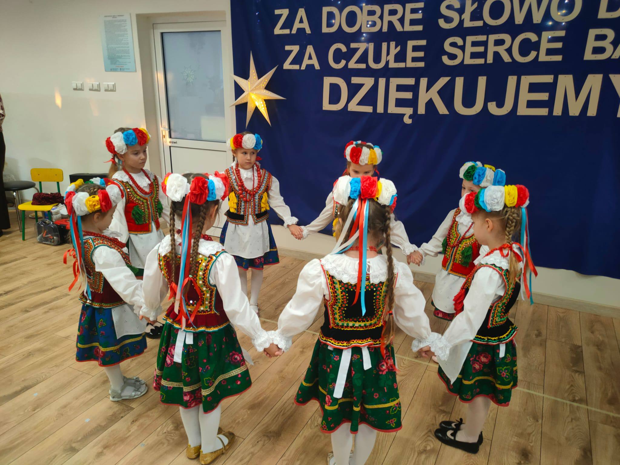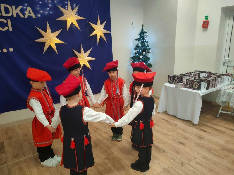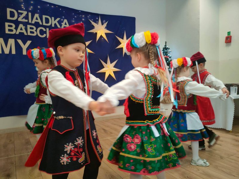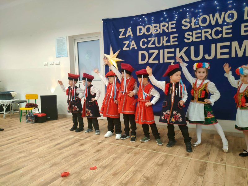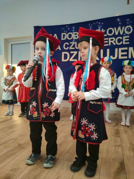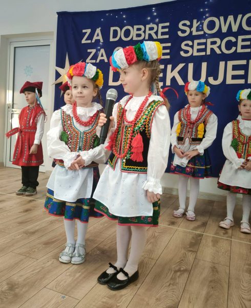 . Dzieci zaprezentowały się w przepięknych, kolorowych strojach ludowych, które zachwyciły wszystkich obecnych i przeniosły nas w świat dawnych obrzędów i zwyczajów.