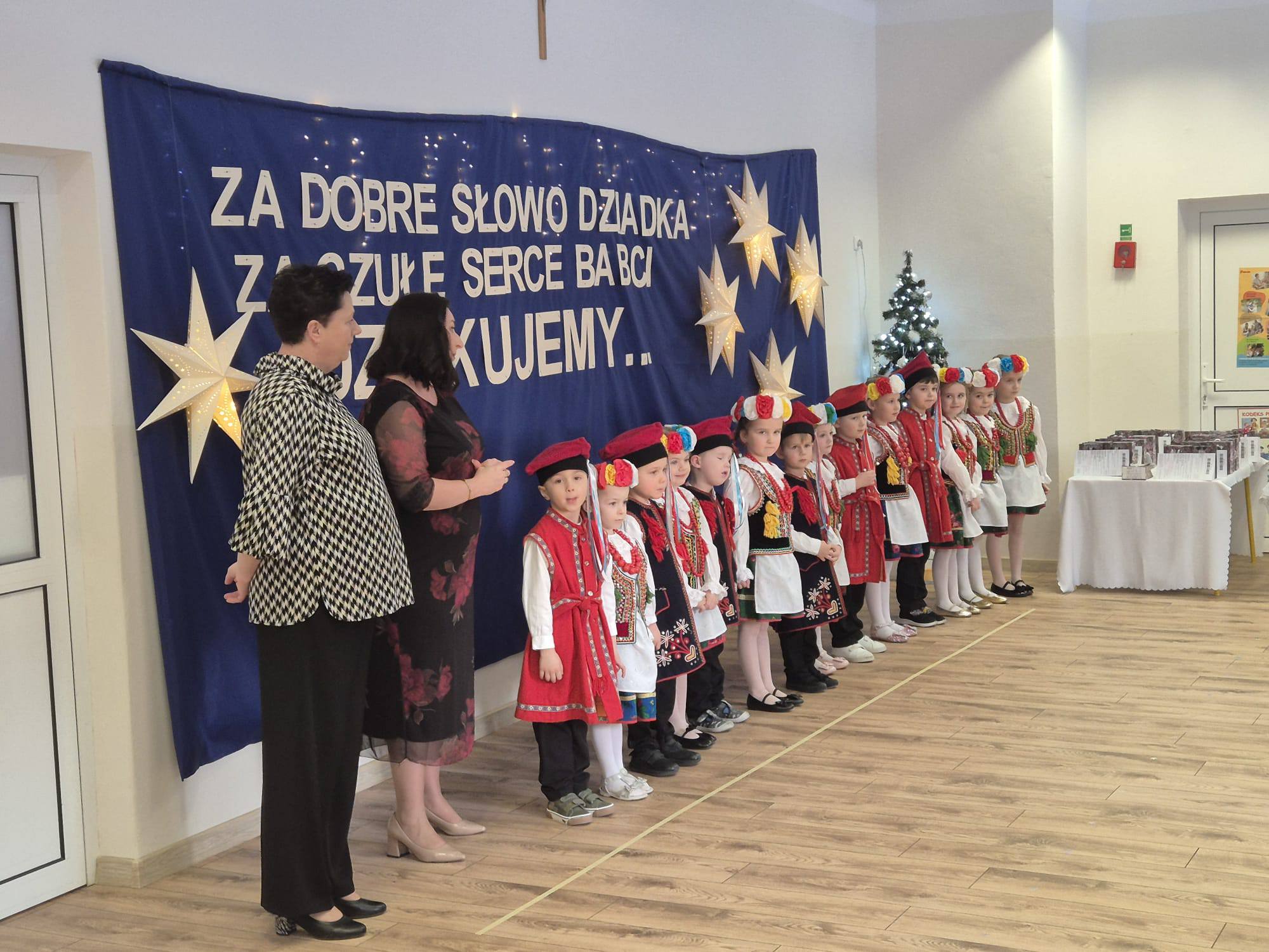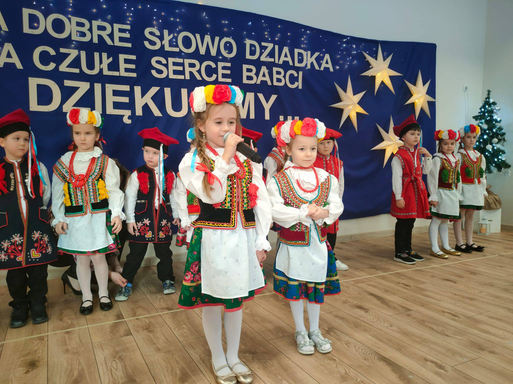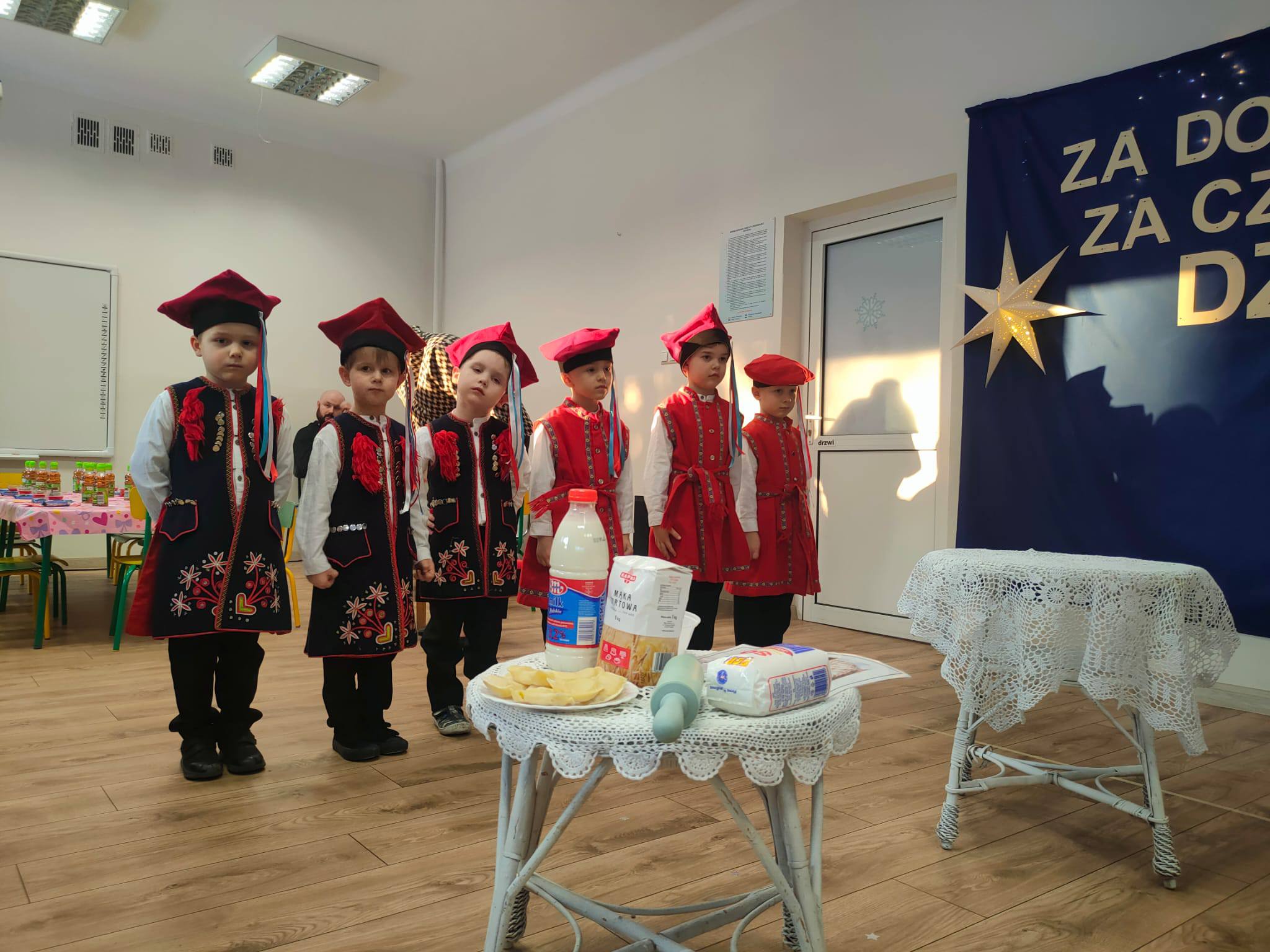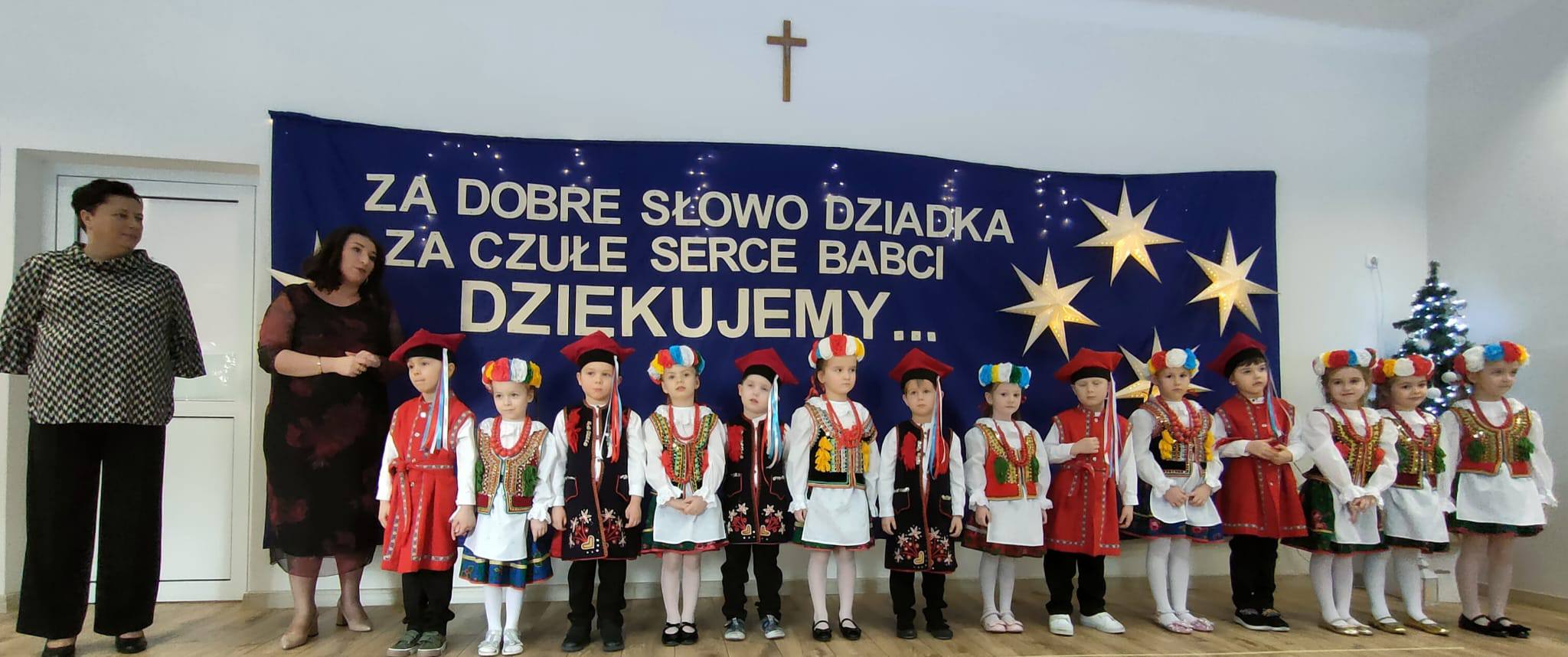 . Dzieci zaprezentowały się w przepięknych, kolorowych strojach ludowych, które zachwyciły wszystkich obecnych i przeniosły nas w świat dawnych obrzędów i zwyczajów.